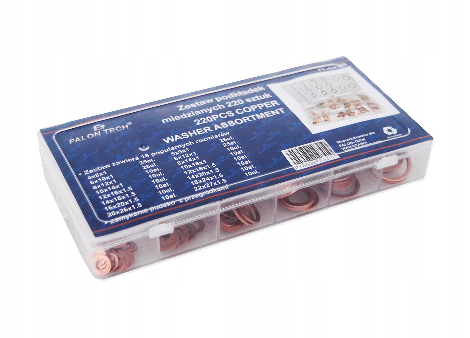 Podkładki są posegregowane i opisane. Komplet zawiera wiele rozmiarów. Zestaw znajduje zastosowanie w każdym profesjonalnym warsztacie.