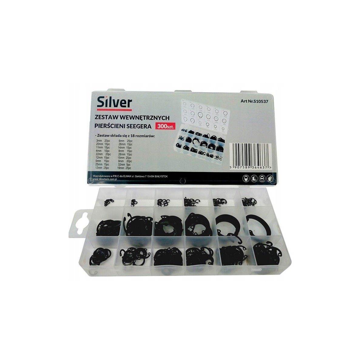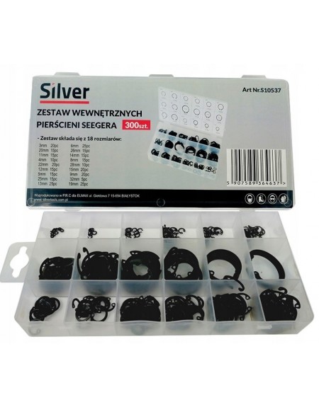 Profesjonalny zestaw 300 pierścieni Segera zewnętrznych. Zawiera mix 18 różnych rozmiarów. Całość w solidnym organizerze. Niezastąpiony w warsztacie samochodowym, w rolnictwie i przemyśle.