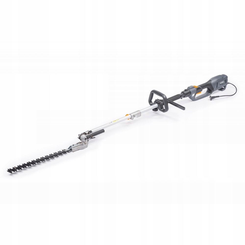 Nożyce elektryczne na wysięgniku z trzynasto-stopniową regulacją pochylenia firmy POWERMAT PM-NEW-1200S z wysokiej jakości ostrzem ze stali wysokowęglowej. Możliwość szybkiej i łatwej regulacji kątowej nożyc w dwóch płaszczyznach co bardzo ułatwia przycinanie krzewów. Silnik elektryczny o mocy 1200 W umożliwia cięcie gałęzi do 18 mm.