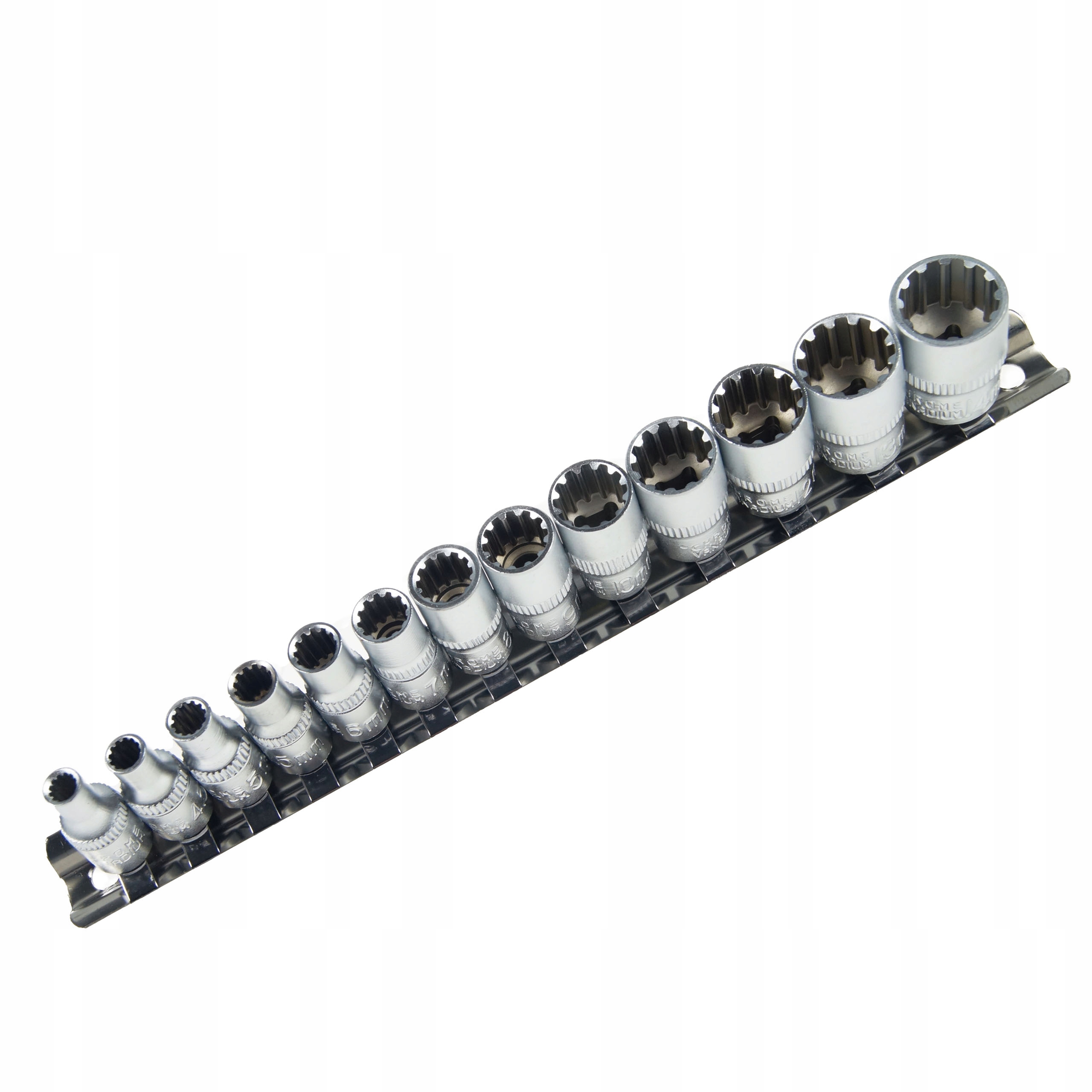 Praktyczny zestaw nasadek Spline 1/4".13 sztuk w rozmiarach (od 4 do 14 mm) + szyna