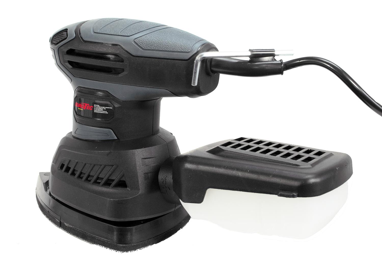 Dla maksymalnego komfortu i bezpieczeństwa użytkowania, szlifierka została wyposażona w specjalny antypoślizgowy uchwyt pokryty gumą. Ruch mimośrodowy zapewnia równomierne ścieranie obrabianego materiału, bez bruzd i nierówności.