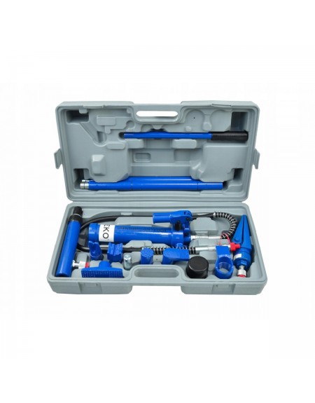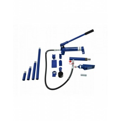 Zestaw rozpieraków hydraulicznych o sile nacisku 4 tony. Zestaw został wyposażony w wydajną pompę hydrauliczną dzięki której wykonasz następujące prace: podnoszenie, ściąganie, zginanie, prostowanie oraz rozpieranie.