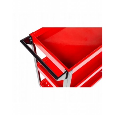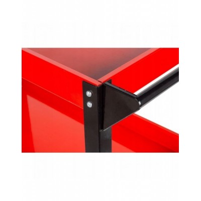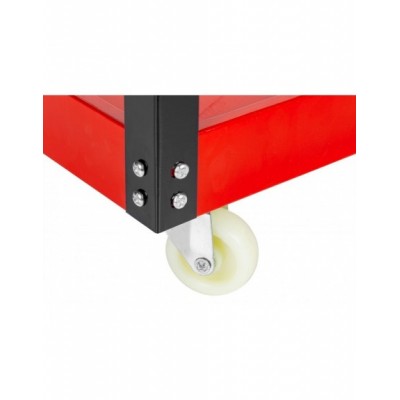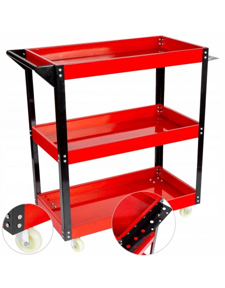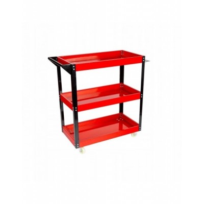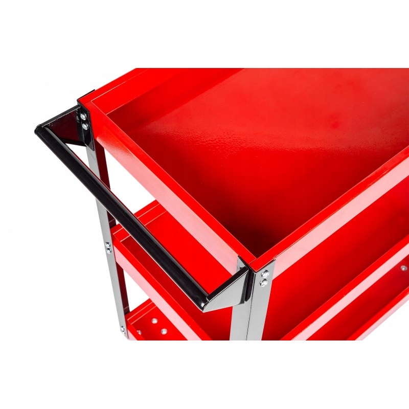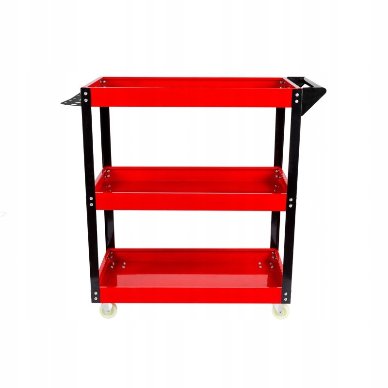 Szafka narzędziowa/wózek warsztatowy to niezbędne narzędzie w twoim garażu. Solidnie wykonany wózek z trzema metalowymi półkami pozwoli zachować porządek w warsztacie oraz przewożenie niezbędnych narzędzi do pracy. Dzięki zamontowanym kółkom możemy swobodnie ustawiać wózek w odpowiednim miejscu. Dwa z czterech kółek są obrotowe co daje nam swobodne kierowanie.
