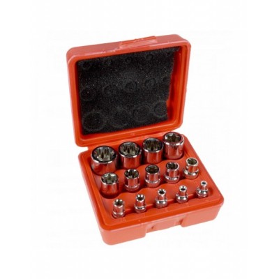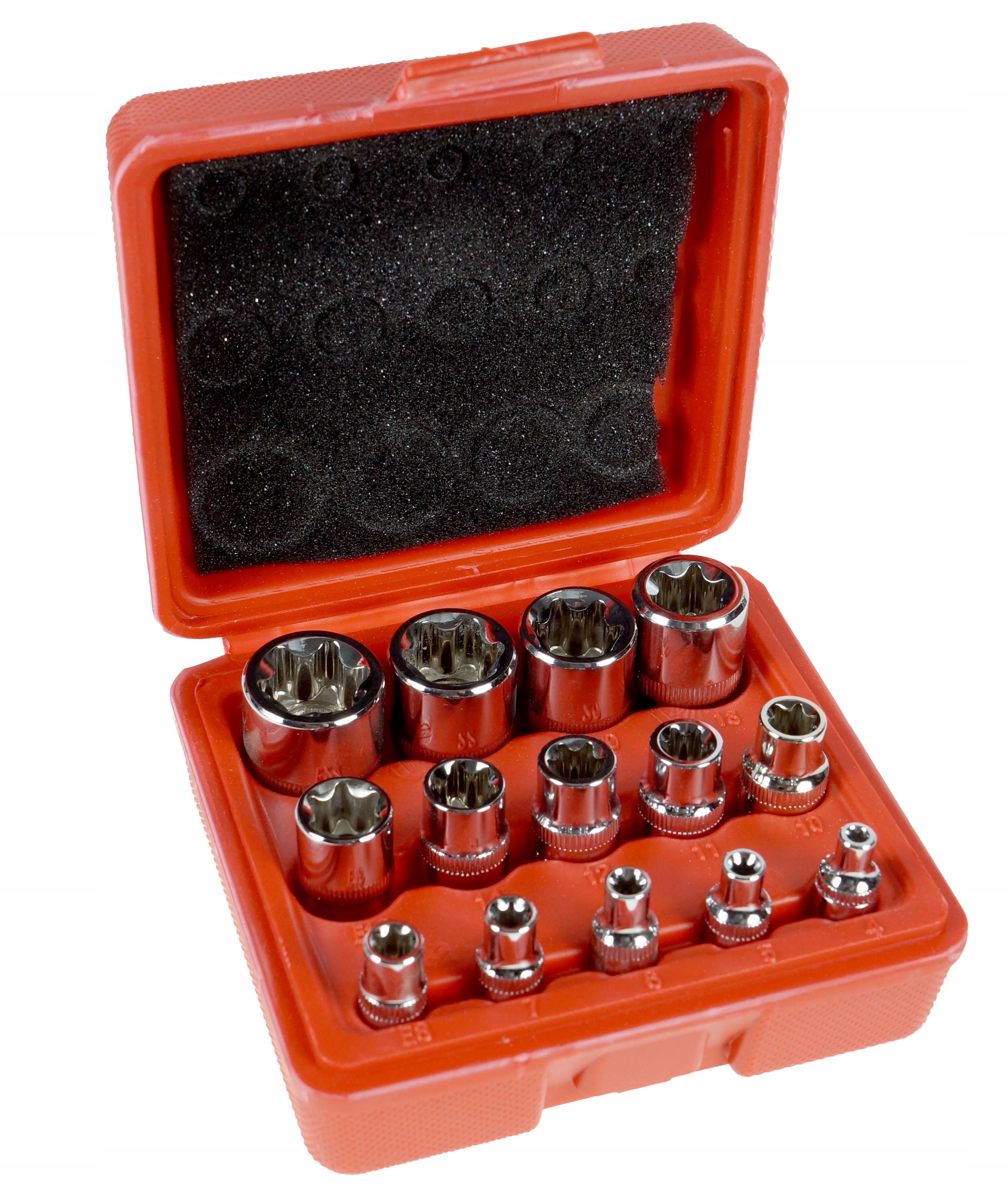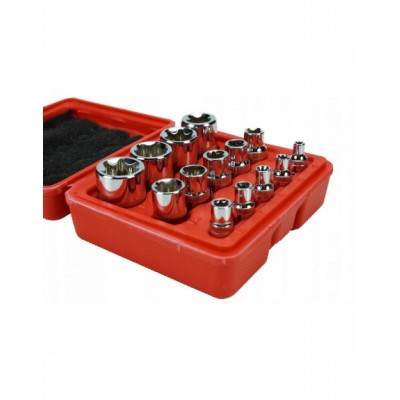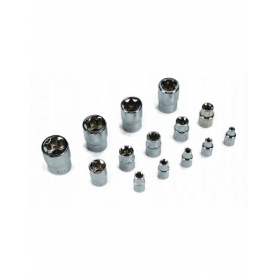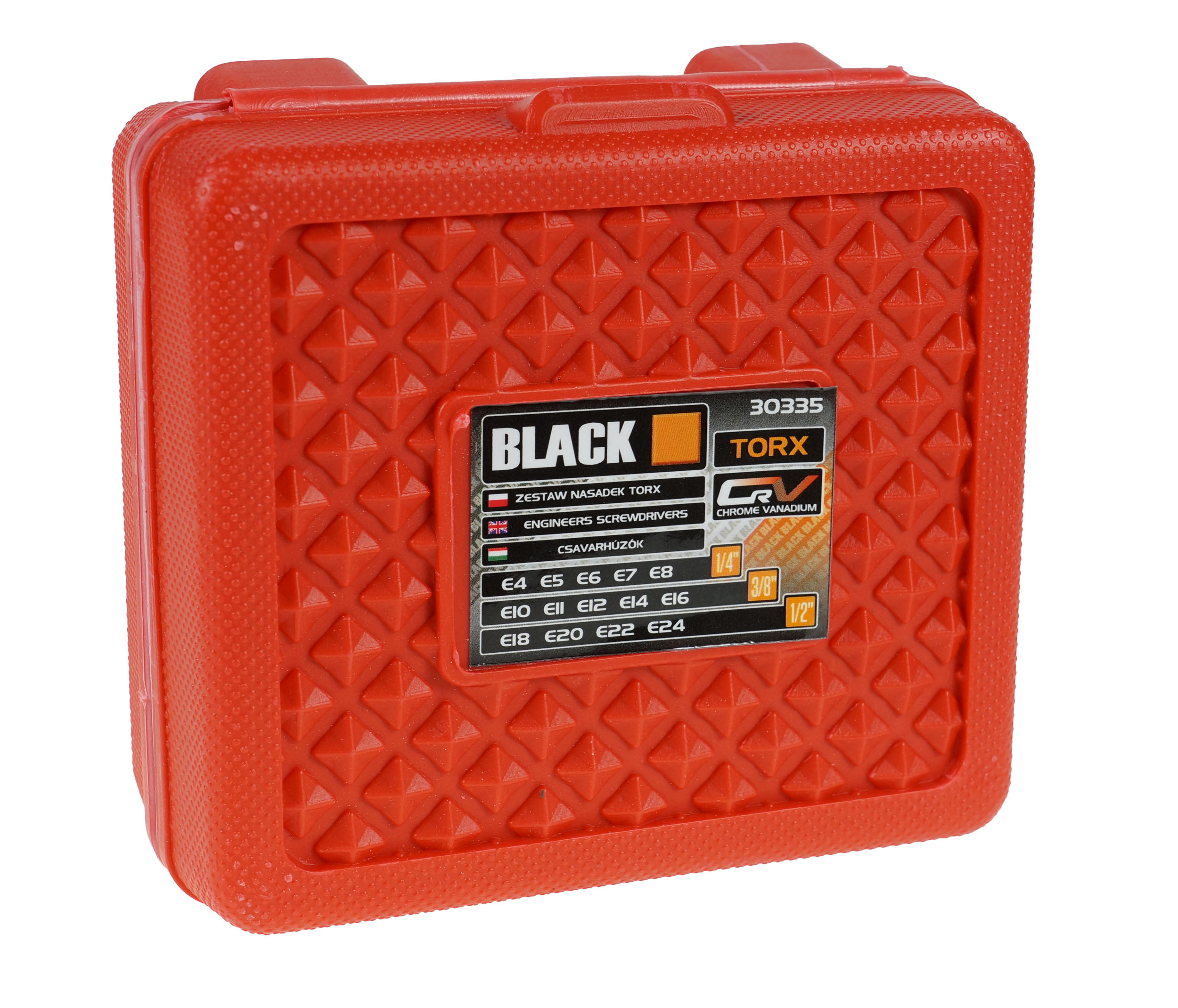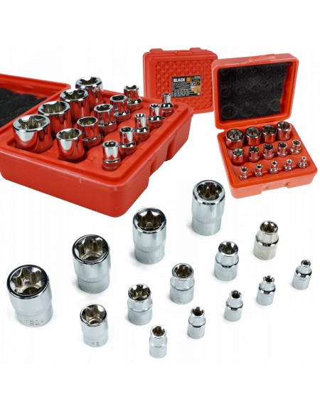 Komplet nasadek E-TORX BLACKTOOLS na 1/2", 3/8" i 1/4”. Zestaw jest starannie i precyzyjnie wykonany z wysoce wytrzymałej stali chromowo-wanadowej (CrV), co znacznie zwiększa ich trwałość i żywotność. Zestaw przydatny w każdym profesjonalnym warsztacie samochodowym, jak i w przydomowym garażu. Całość zapakowana w poręczną i solidną plastikową walizkę.