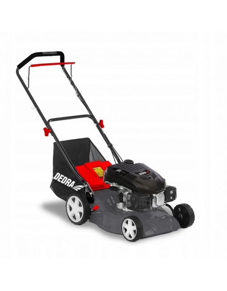 To urządzenie przeznaczone do koszenia i pielęgnowania mniejszych i średnich trawników. Kosiarka napędzana jest silnikiem spalinowym o mocy 2,7kW. Taka konstrukcja pozwala na efektywną pracę nawet podczas koszenia wysokiej trawy. Dzięki szerokości koszenia 430 mm idealnie sprawdzi się w małych i średnich ogródkach, gdzie większe urządzenia mają problemu z manewrowaniem. Zwarta konstrukcja oraz duże koła ułatwiają manewrowanie urządzeniem. Wysokość koszenia jest ustawiana centralnie w 6 pozycjach (25-75mm). Kosiarka posiada funkcję mulczowania/mielenia trawy, dzięki czemu ograniczamy objętość urobku. Urobek wyrzucany jest do tyłu. Składana rękojeść oraz kosz siatkowy ułatwiają przechowywanie i transportowanie. Korpus kosiarki został wykonany z grubej blachy 2mm co znacząco zwiększa trwałość urządzenia zwłaszcza podczas użytkowania na nieoczyszczonych działkach. Wygodny piankowy uchwyt zwiększa komfort podczas długiego użytkowania.