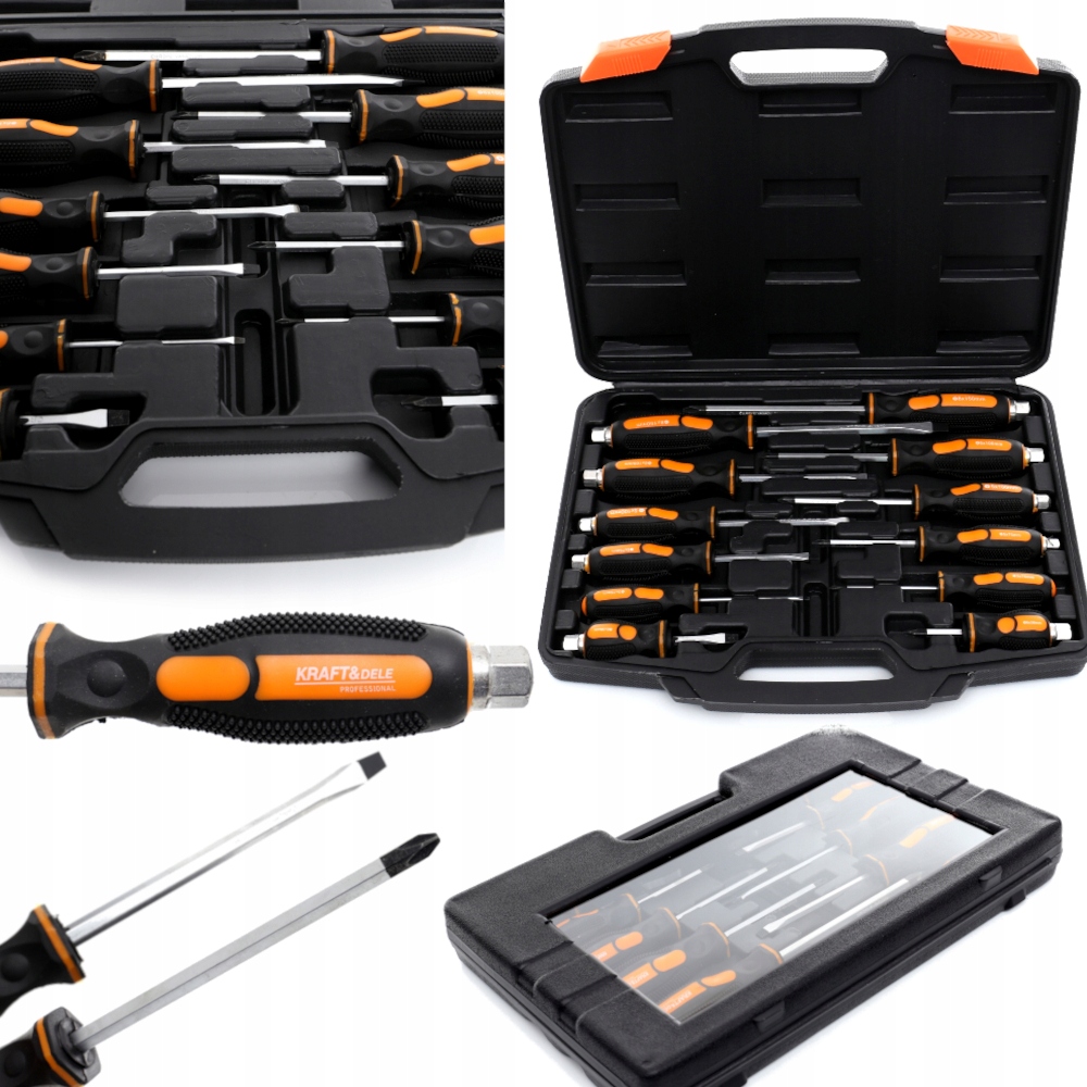 Rączki wkrętaków są specjalnie wyprofilowane oraz pokryte gumowymi wypustkami zapewniającymi lepszy chwyt.