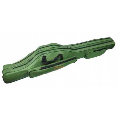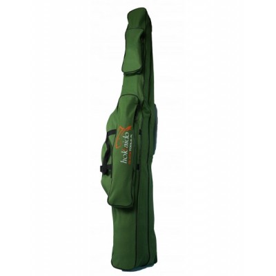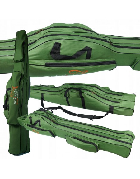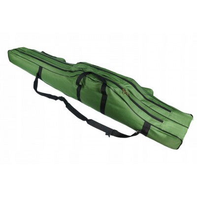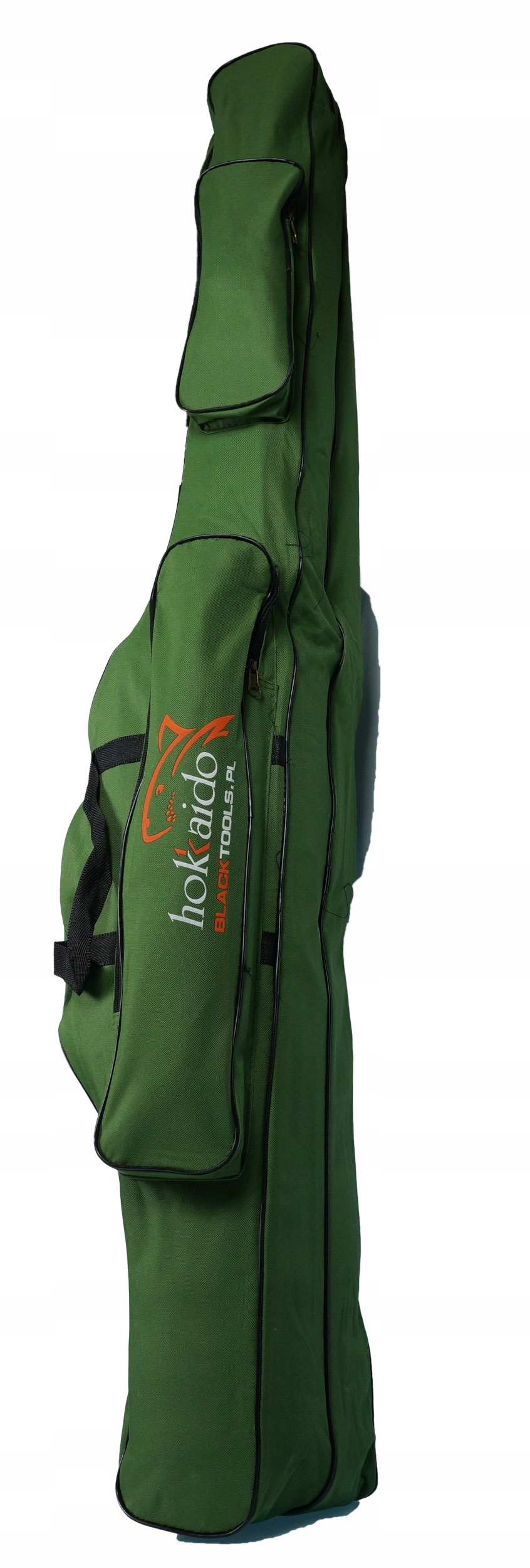 Pokrowiec ze sztywnego materiału w kolorze wojskowej zieleni. Posiada 2 komory po 150cm.Wygodny do noszenia w ręku czy na ramieniu, solidnie wykonany z bardzo dobrej jakości sztywnego materiału.Na boku znajdują się kieszenie, w których można przenosić mniejsze akcesoria, ich wymiary to: 55x12cm oraz 32x12cm.