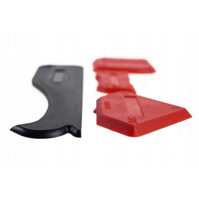 Nie uszkadzają krawędzi i nie rysują glazurowanych powierzchni.W kpl. pięć szpachelek o różnych grubościach i profilach oraz poręczny nożyk- obcinak, przeznaczony do usuwania nadmiaru zakładanej masy.