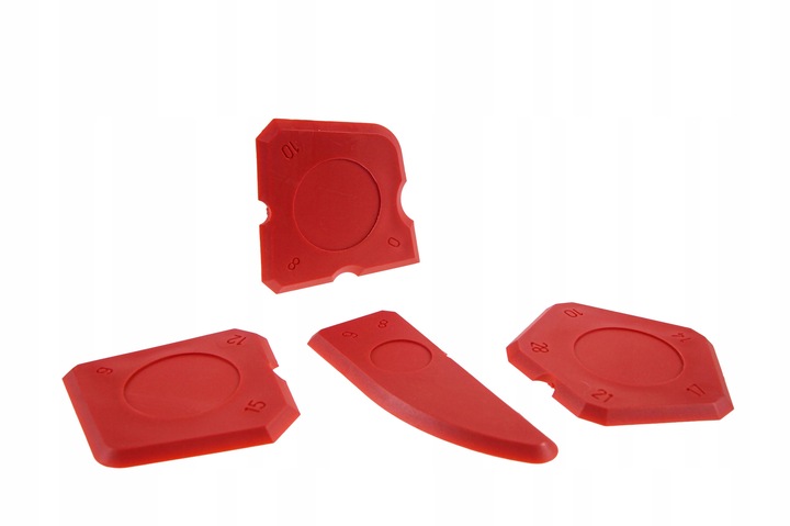 Rakle zapewniają dużą elastyczność oraz wielokrotne i długotrwałe użytkowanie. Szpachelki do łuków zapewniają profesjonalne wykończenie połączeń silikonowych. Doskonale współpracują ze wszystkimi elastycznymi uszczelniaczami, np. silikonowymi, akrylowymi i poliuretanowymi. Zestaw kostek zapewnia aż 10 różnych promieni / fazowania spoin.