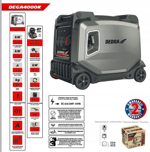 - Pojemność zbiornika paliwa: 11L (ok. 10h pracy na zbiorniku)