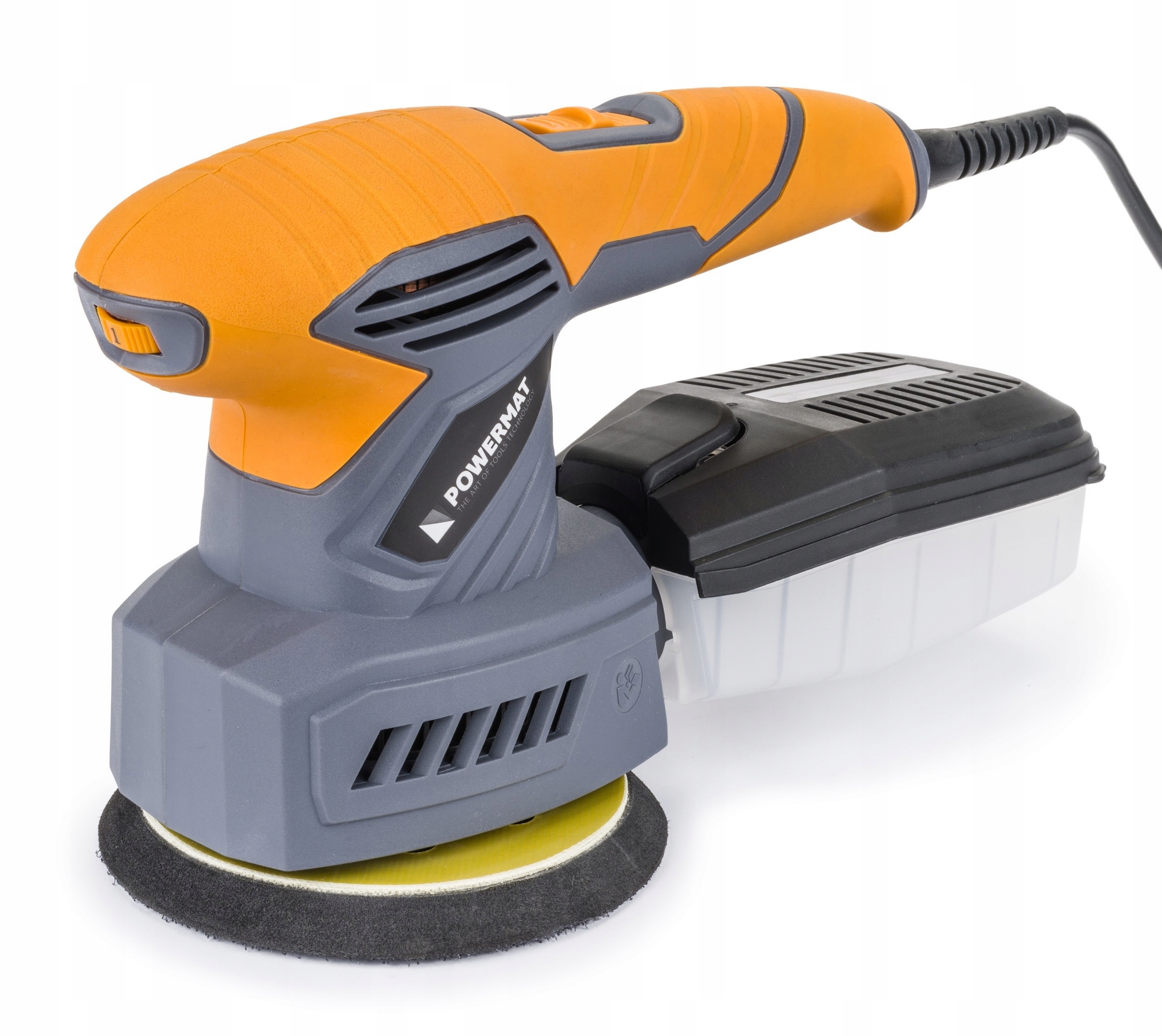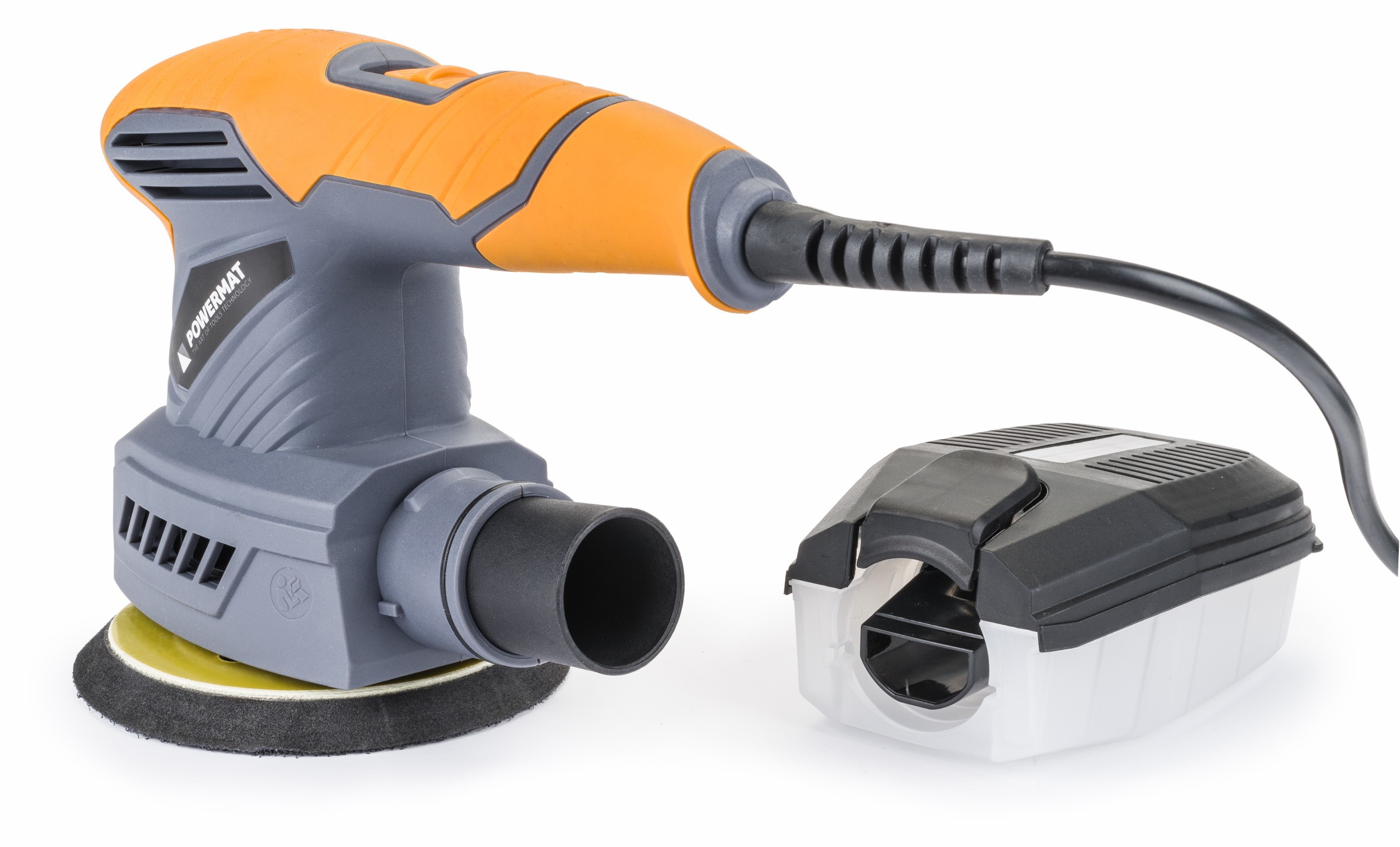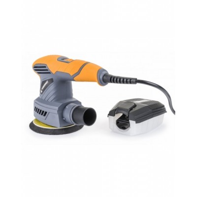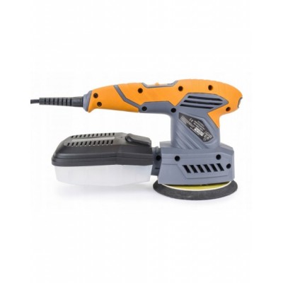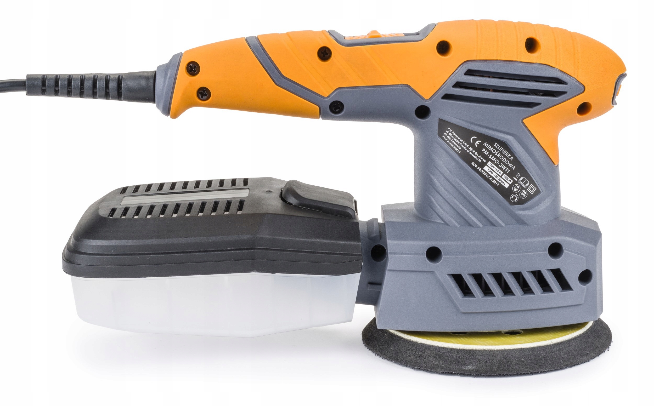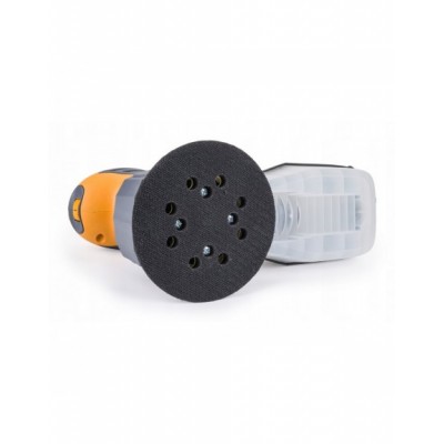 Urządzenie współpracuje z materiałem ściernym o średnicy 125mm z mocowaniem na rzep oraz ośmioma otworami odpylającymi.