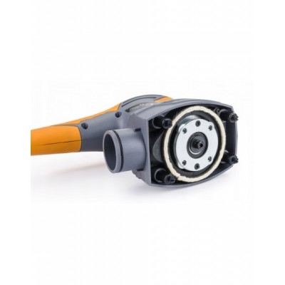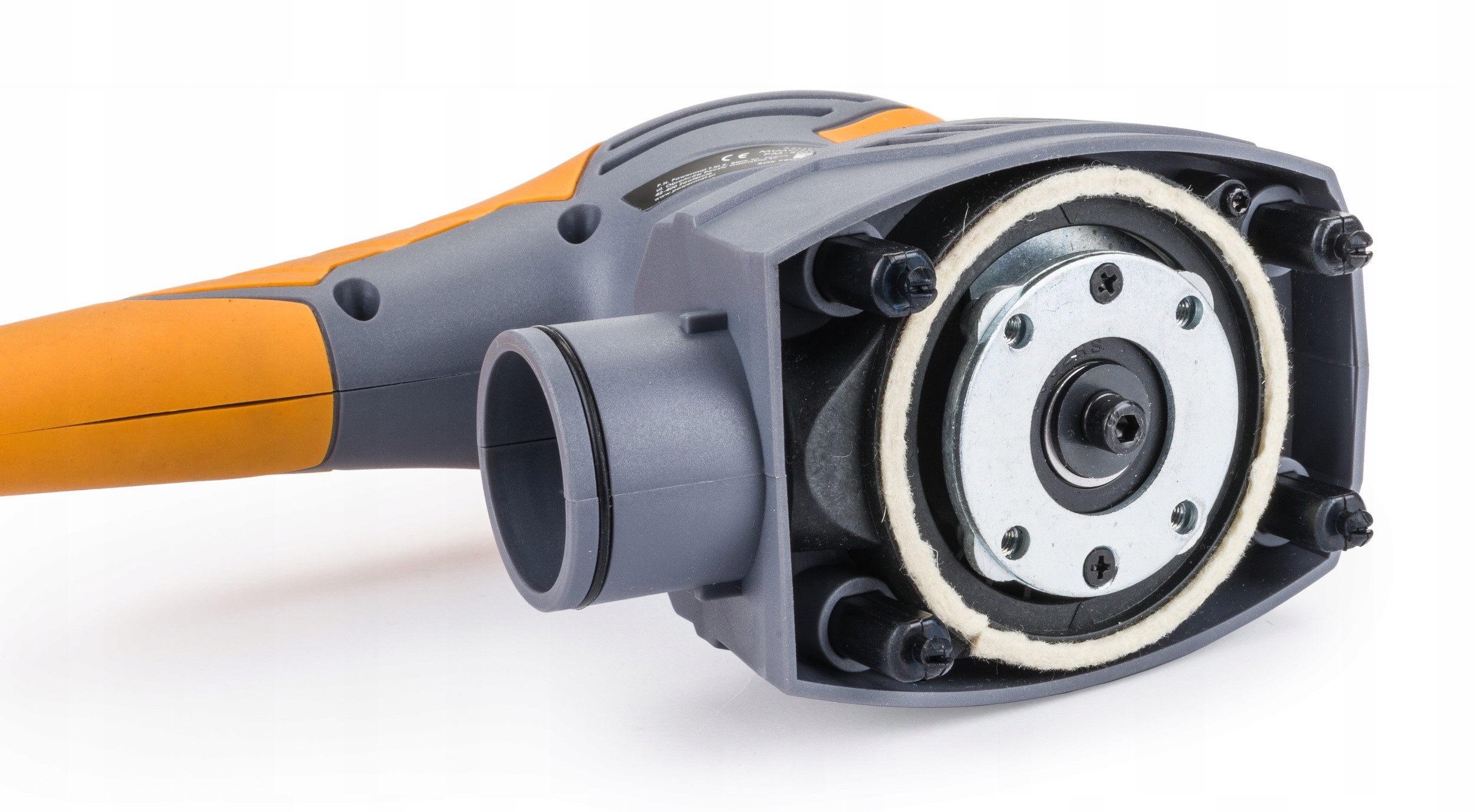 Aby ułatwić precyzję szlifowania gumowany autonomiczny uchwyt został odpowiednio wyważony w stosunku do osi głowicy mimośrodowej umożliwiając idealny prostopadły docisk do powierzchni.